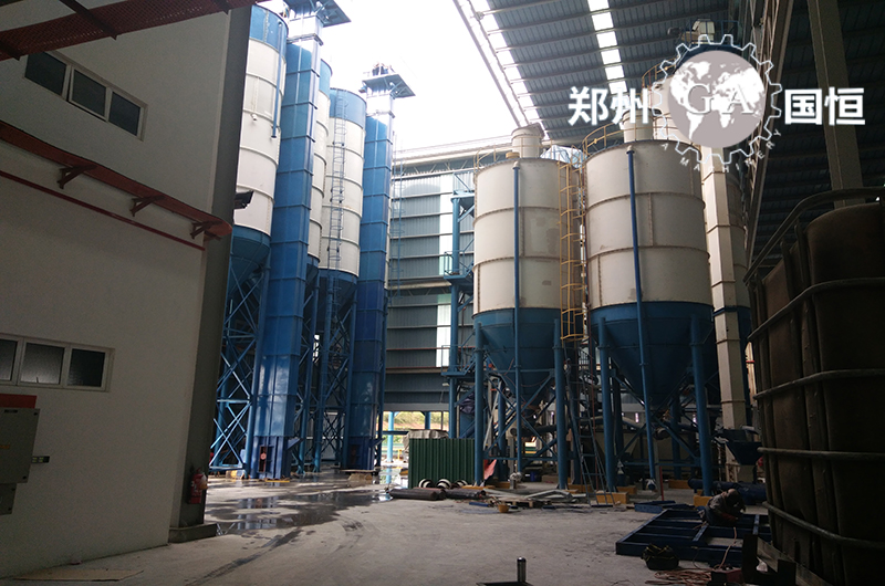 干粉砂漿是指經(jīng)干燥篩分處理的骨料(如石英砂)、無機(jī)膠凝材料(如水泥)和添加劑(如聚合物)等按一定比例進(jìn)行物理混合而成的一種顆粒狀或粉狀,以袋裝或散裝的形式運(yùn)至工地,加水拌和后即可直接使用的物料。又稱作砂漿干粉料、干混料、干拌粉,有些建筑黏合劑也屬于此類。干粉砂漿在建筑業(yè)中以薄層發(fā)揮粘結(jié)、襯墊、防護(hù)和裝飾作用,建筑和裝修工程應(yīng)用極為廣泛。